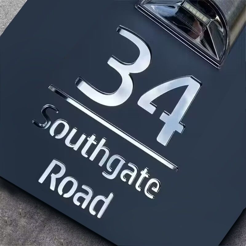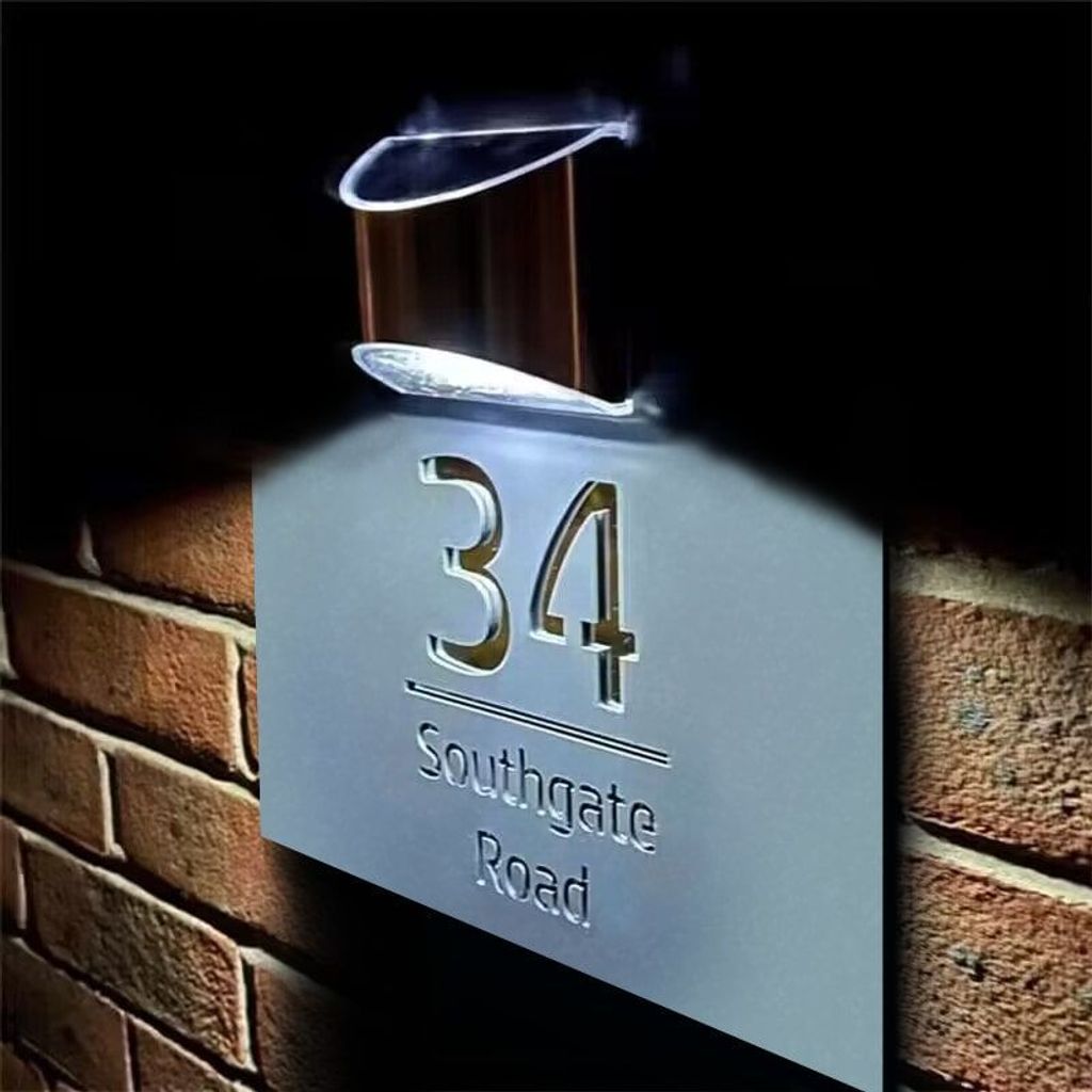 Diese aus langlebigen Materialien gefertigte Hausplatte integriert nahtlos solarbetriebene Technologie. Personalisieren Sie es mit Ihrer Hausnummer und Ihrem Straßennamen für eine persönliche Note. Wählen Sie je nach Ihren Vorlieben zwischen lichtempfindlicher oder bewegungsempfindlicher Steuerung.
